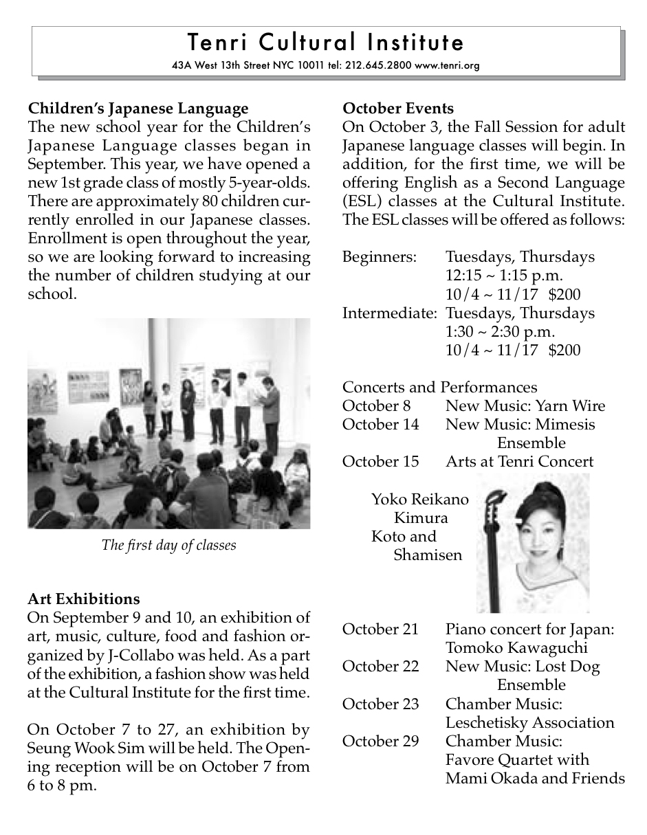 TENRI CULTURAL INSTITUTE OF NEW YORK 43A WEST 13TH STREET, NEW YORK, NEW YORK 10011 TELEPHONE 212.645.2800 EMAIL tci@tenri.org