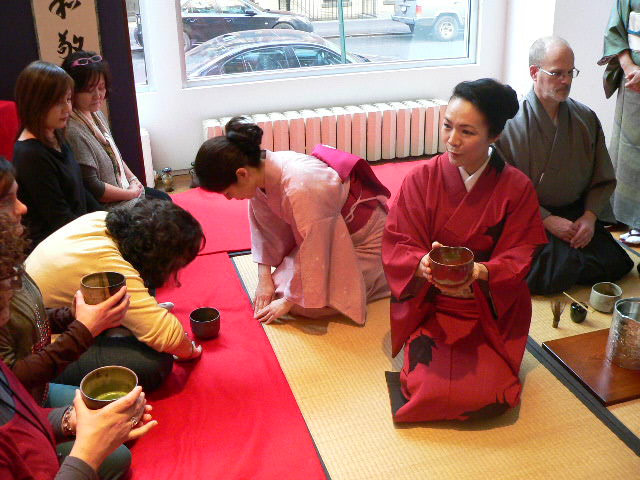 A--Chanoyu practice (okeiko) or 'ocha no okeiko', begins with learning how to receive a bowl of thin tea.